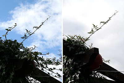 Before and after photos below shows the ivy growing at the top of my walkway – it is much nicer to walk through now and the smell of the jasmine in flower is wonderful – although I did have to trim some stems of the jasmine too as they were at eye level height.