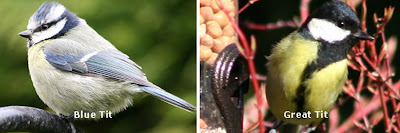 Blue Tits and Great Tits are also difficult to catch with my camera as they are so quick to the feeders. Often they just take a sunflower heart away and eat it from the safety of a tree branch above. However the are very easy to spot in flight with their short swooping flight pattern. This morning I saw one Blue Tit and one Great Tit.