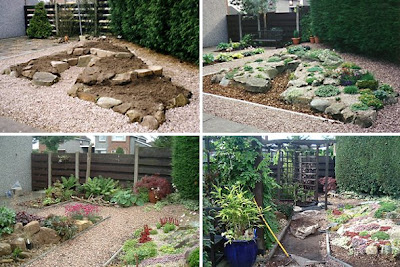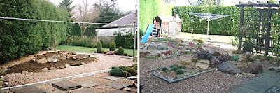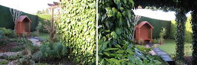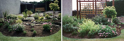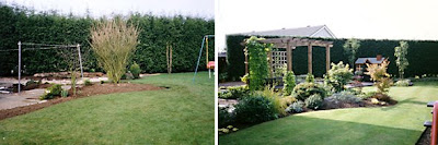 Opening the garden gate into my back garden when we moved here and your eye was completely drawn to the far corner and you saw the whole part of this area in one go. Nothing stopped your eye going straight to the boundaries. There was a strip of lawn and a large area of gravel and paving as you will see in the first photo below. A few years on and we had toddling daughters and a Wooden Wendy house which, located in front of the hedge, stopped the eye going all the way to the corner.