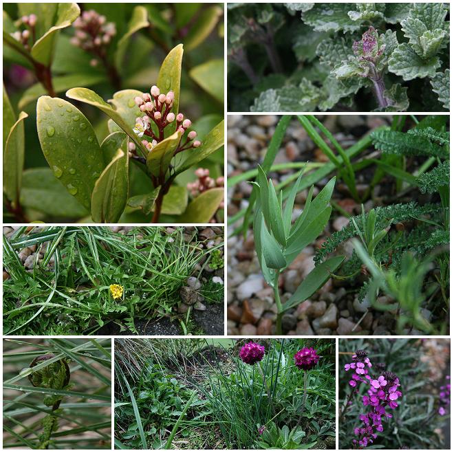 Skimmia blossom opening, Nepata flowers developing, Dandelions, Alliums, Ferns, Red Campion, Drumstick Primula and Wallflower all moving along nicely in my front garden.