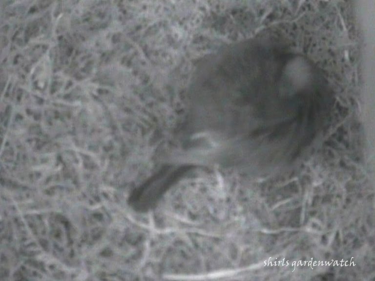 Just when I was considering moving our original camera nestbox round the corner of a wall… on Saturday morning I looked in the nestbox first to find…