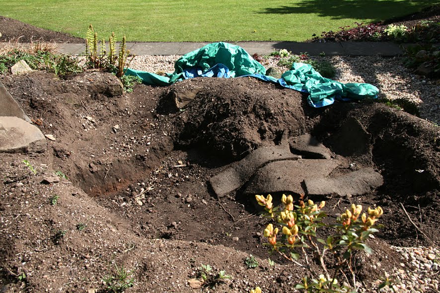 On and off in the last two weeks I’ve tried different arrangements of the rocks. I won’t rebuild it completely until I’m certain all looks okay. However, even when I think it’s near the slightest back tilt as the rocks build up and I could be back to square one. Perhaps adding a piece of liner could be the answer.