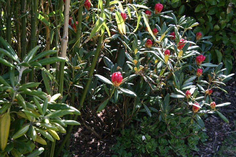 A week on and this rhododendron was laden with its large blooms and another rhododendron nearby with very few buds had also opened too. Now, a few days on again and these blooms are going through more colour changes. It really is amazing what a few sunny days makes to plants.