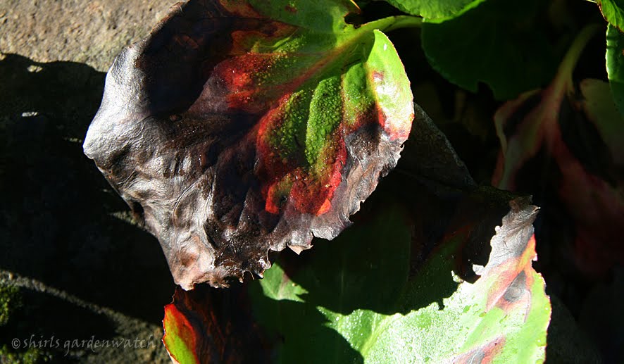 Soon the garden will change without any intervention from me. As temperatures drop as will the leaves from the trees. Leaves on evergreen plants will change colour a little like the Bergenia below. The fresh Spring and Summer greens are on their way out.