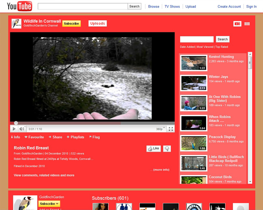 Wildlife in Cornwall is the title of Goldfinch Garden’s Channel at YouTube. Paul is the man behind the camera and the fantastic quality and range of bird and wildlife videos you’ll find there. It’s no surprise to me at all that he has 601 subscribers as of today.