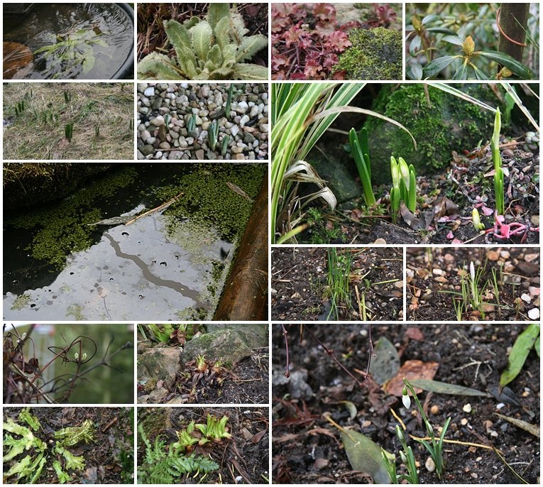 In 2009, the Crocus was fully out as were snowdrops. You’ll see their slower growth for 2011 in the second montage below. No Crocus colour yet and only one Snowdrop bell which hasn’t opened yet.
