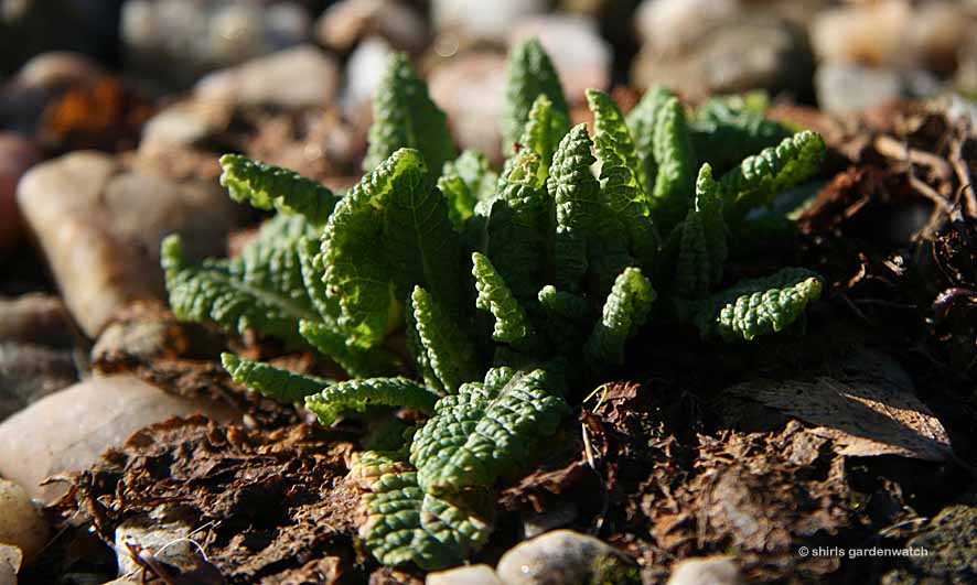 Back garden: Native Primrose, leaves bulking up, flower buds growing soon.