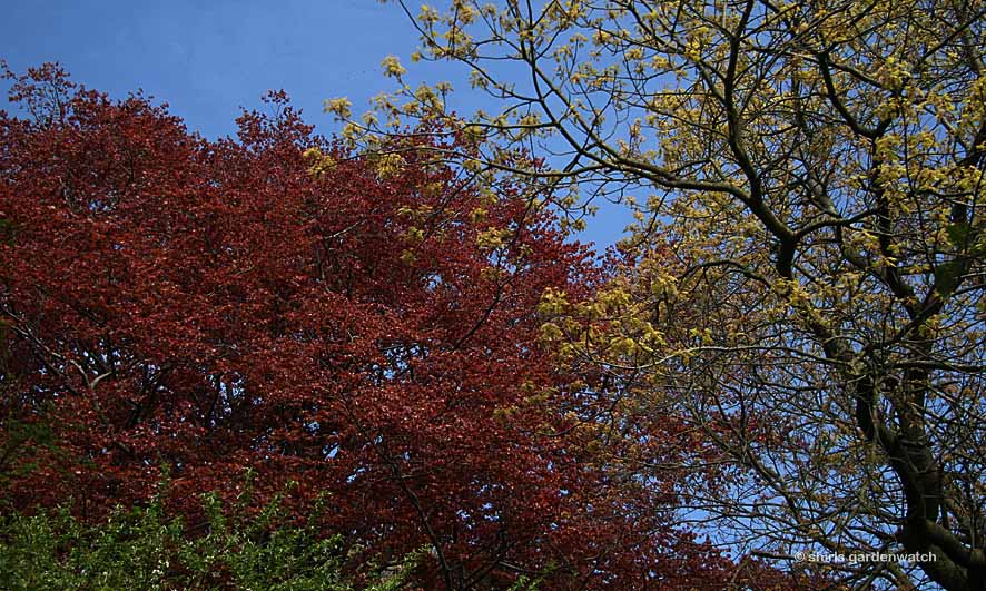 Refreshed, we usually head down the hill to my fav area which is the Chinese Hillside where some wonderful yellow flowers greeted us at the entrance. I love the trees in this compact area and there was a wealth of new leaves in a variety of colours too.