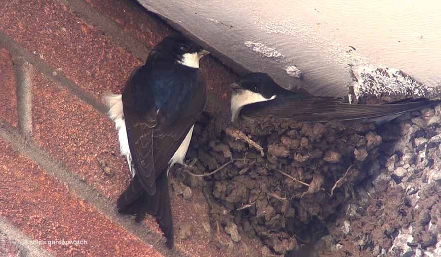 Now then, with House Martin eggs (usually 2-5) being incubated for 15 days and the image above taken on June 3rd it’s possible that in this nest of pellets of mud, lined with feathers and grass (collected in the air) made by both the male and female may have eggs inside at the moment. I wonder. Needless to say, there are no cams in this nest 😉
