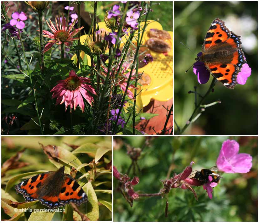 Your lovely photos well represent the weater you're having. Butterflies have a way of increasing just when you despair. The tortoiseshell is beautiful. Work in the garden is never done but oh, so satisfying.