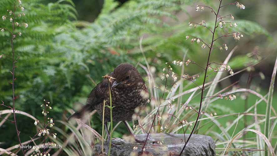 Blackbird juveniles are the ones that have been entertaining me in my garden recently. New ones seem to appear every other day. By the way the parents are still going away with beakfuls of sunflower heart seeds there will be more to come too.