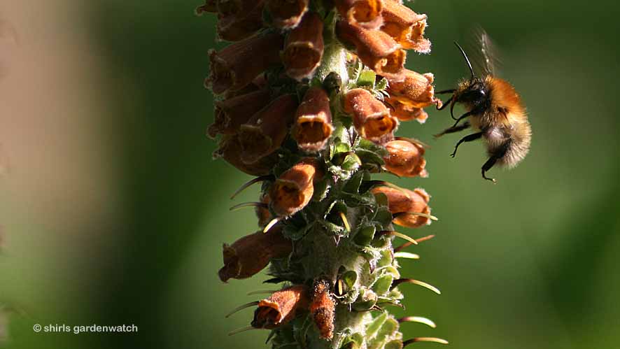 Of course, when taking photos of wildlife a keen eye is required and it’s very easy to miss moments in different lighting conditions (like early morning sunshine) as shown below. I had given up the idea of seeing feeding bees on the tiny bell trumpets of my ‘Milk Chocolate’ foxglove and as I enjoyed a sunny Sunday breakfast in my garden last weekend I was thrilled to finally see a bee feeding on my plant. In an instant my plant purchase was verified…