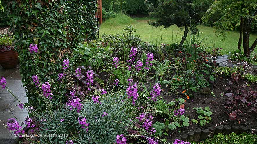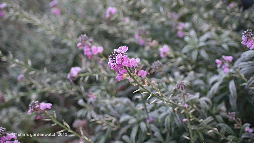 Erysimum ‘Bowles’ Mauve flowers and grey-green foliage lights up partial shade 🙂