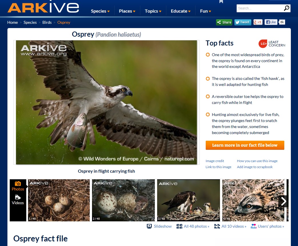 Occasionally, I do find myself browsing wildlife videos on YouTube and one such time I came across the video below of Ospreys fishing by the Charity ARKive which I would love to share. What a brilliant few pieces of footage this is! I love the bit when the Osprey looks like it is surfing across the sky! Enjoy…