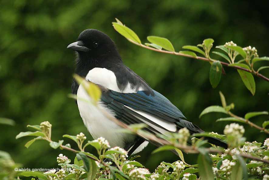 The Magpie strikes an innocent pose for the garden owner prior to landing