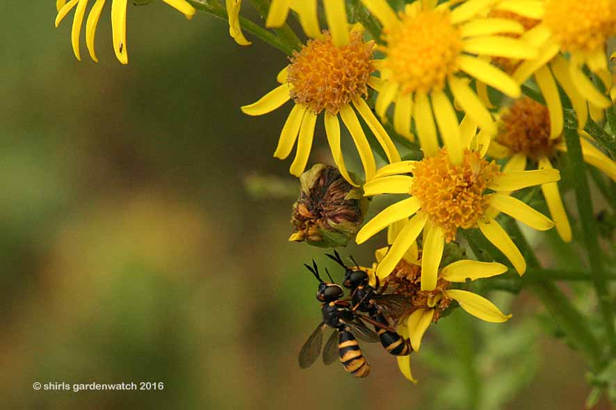 Another pair – some sort of hoverflies? Does anyone know what these are?