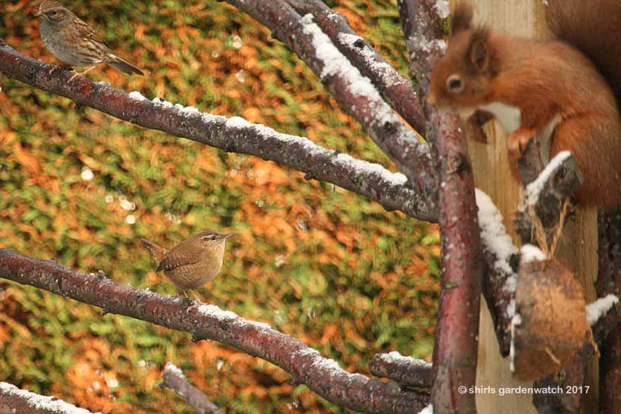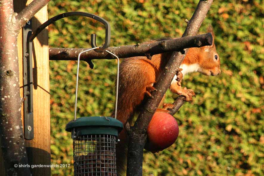 After the first ever Red squirrel garden visits spotted earlier last November, expecting them to return in 2017 was a very faint thought indeed. That really would be greedy to be so very privileged again… but one very alert and no nonsense one has!