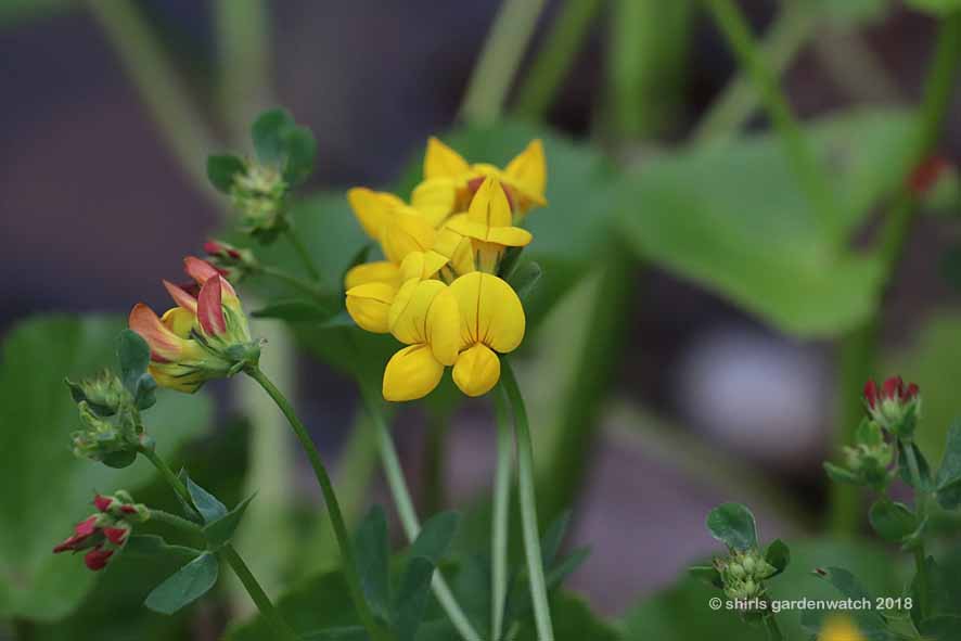 Common Bird’s-foot-trefoil arrived in my garden a few years ago, deliberately. Again, coming from my childhood memories where it was seen growing along the grassy edge of a pebbled river with colt’s foot, violets and many other wild flowers. I grew this plant from seed many years ago and it always makes me smile, growing by the edge of my pond. It was the one of the first wild flowers I brought into my garden 🙂